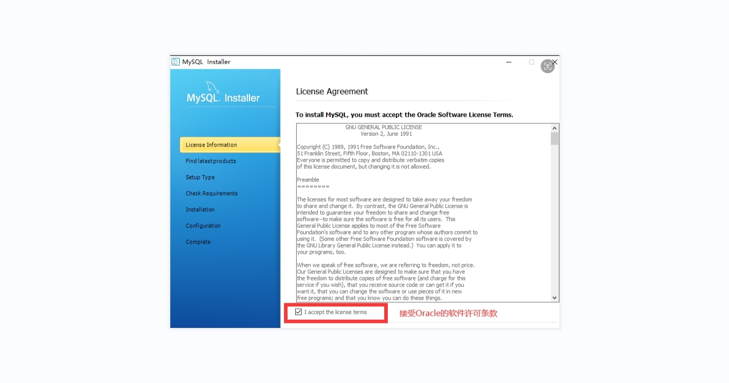 2、安装开始界面,勾选I accept the license terms(我接受许可条款)。