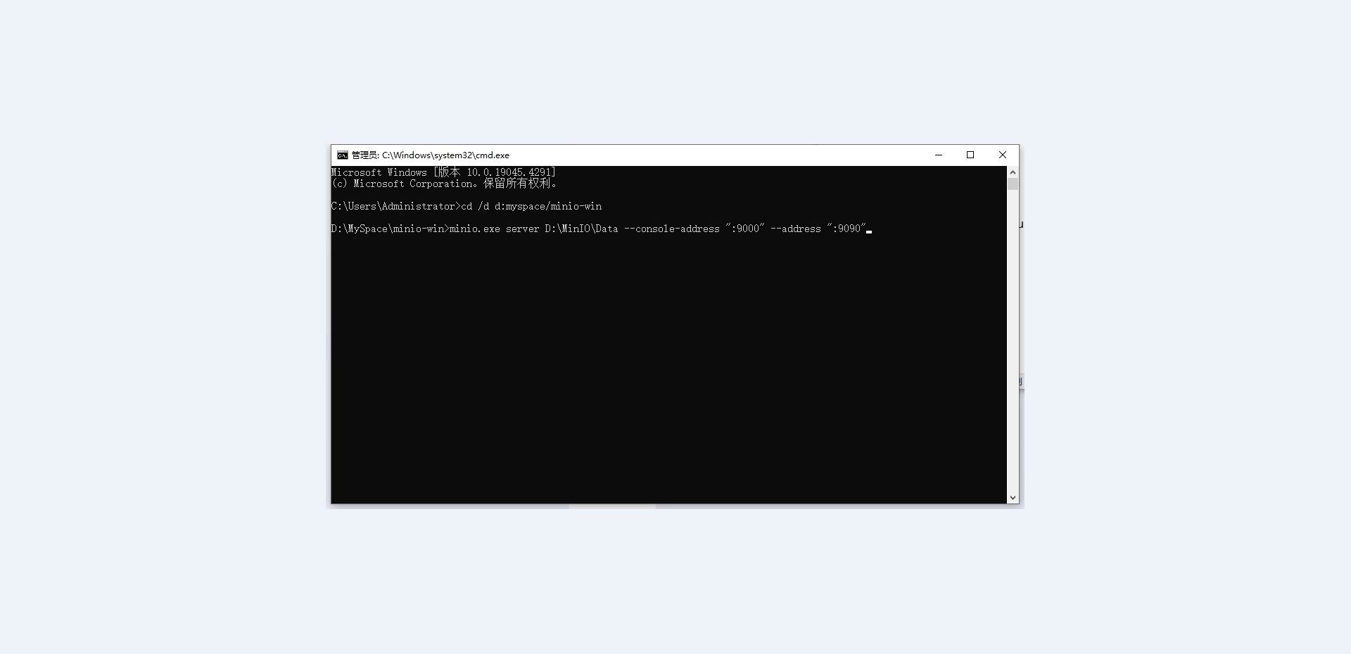 minio.exe server D:\MinIO\Data --console-address ":9018" --address ":9090"