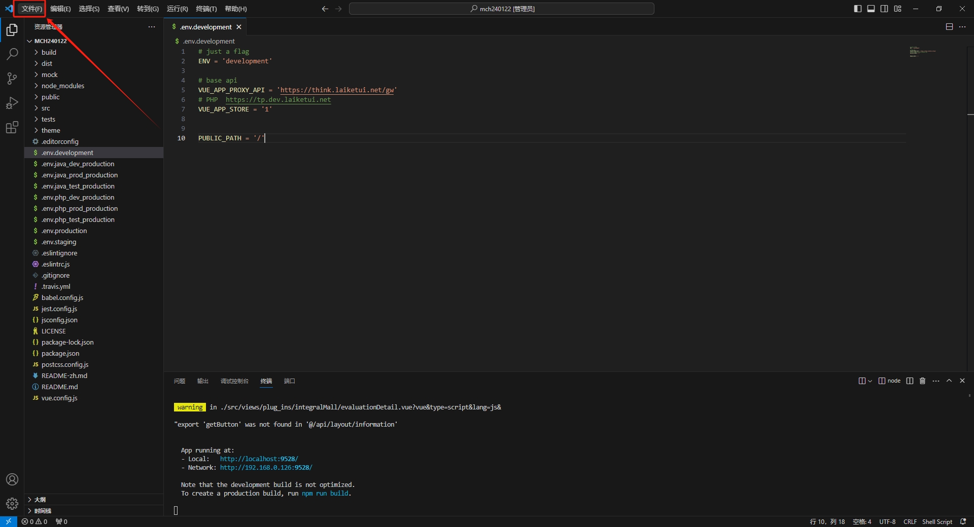 1、使用vscode打开LaiketuiJavaMch项目,点击左上角‘文件’找到项目所在位置打开